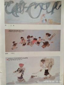 画页【散页印刷品】---国画---风(王瑛)、童戏(肖国仪)、赶集归来(王瑛)、小河边(陈文士)、农闲(杨涪林)622