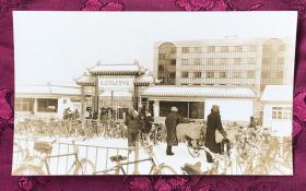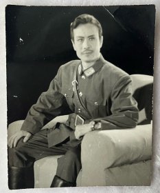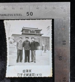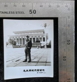 老照片:早期80年代初解f军战士在毛主席纪念堂前留念单人照(右下角有前门摄影1981),1981,原版照片,光面相纸,黑白照,5.8×7厘米,无齿边相纸,gyx22503