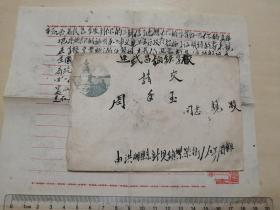 1955年,湖北洪湖县新堤镇繁荣街,寄武昌钢铁学校实寄封,带原信,北海公园美术封,少见的武昌武昌老式邮戳下格空白,少见的两位数字年份邮戳55.10.22,信件内容为全国开展镇反运动过渡时期等