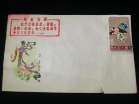 空白封:正面加盖少见手戳最高指示,正面贴特54(12-5)儿童,美术图案织女,gyx221006