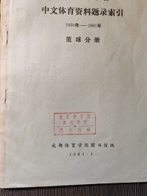 中文体育资料题录索引1950年---1981年篮球分册