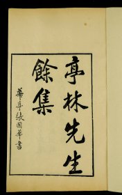 清光绪上海扫页山房精刻本【亭林先生馀集】原装一册全,顾炎武撰,顾炎武,汉族,明末清初南直隶苏州府昆山(今江苏省昆山市)千灯镇人,本名绛,乳名藩汉,别名继坤、圭年,字忠清、宁人,亦自署蒋山佣,原版原装,墨色浓郁,字大清晰,板式精整,保存完好.