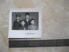 女军人全家戴像章合影留念 老照片