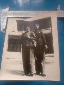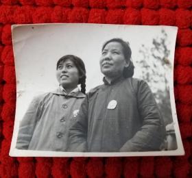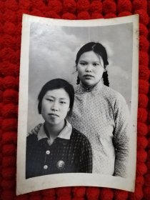 50年代2姐妹照片 非常珍贵胸前戴像章