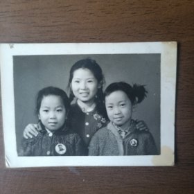 1970年三名儿童合影照片(戴毛主席像章)