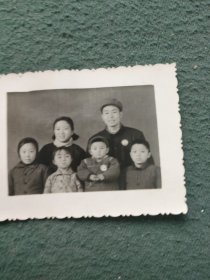 早期(戴像章)老照片〔幸福一家人合影〕