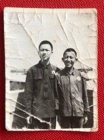 二名男学生戴毛主席像章合影老照片