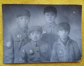 戴像章的4位小男孩合影老照片