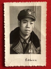 男军人戴毛主席像章签赠老照片