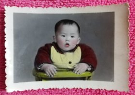 戴像章的小宝宝手工上色 老照片