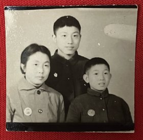 1968年兄妹三人戴像章合影 老照片