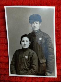 1970年前后男女军人合影照片戴像章 67