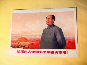 1960~1970火红的年代上海支部生活赠品32开毛主席彩色宣传画:紧跟伟大领袖毛主席奋勇前进! 保真保老历经几十年品尚好 不卖复制品 约17.2厘米×12.5厘米