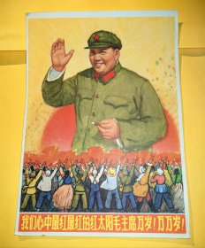 1960~1970年代的红色记忆 上海《支部生活》半月刊稀见赠品 32开毛主席彩色老宣传画:我们心中*红*红的红太阳毛主席万岁!万万岁! 品好保真保老 所见即所得