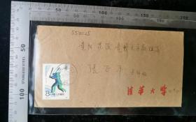名人信札:清华大学寄给时任贵州花溪贵州大学物理系教授张正平实寄封,校园封,正贴j144(4-2)8分六运会,北京-贵阳,双戳清晰,裸封无信扎,1987.11.30,gyx22206