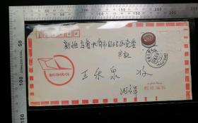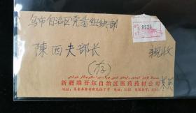 名人信札:新疆电力局基建局群众寄王乐泉书记实寄封,快件封,正贴普票福建民居1元(另一枚掉票),双戳均为旧式双圈汉维双语戳,内详-新疆自治区党委,双戳清,裸封无内信,1995.10.8,gyx22205