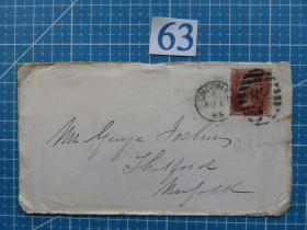 63.1866年8月1日(1d Red on Cover to George Joslin, Thetford, Norfolk)销第82号邮戳-红便士实寄封-早期邮展封