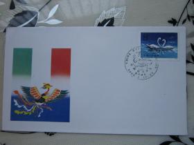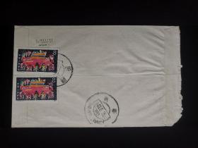 特殊加盖封:背面贴t117(2-1)儿童画,双戳均为汉维双语戳,落地戳为干支戳甲17,自治区-新疆日报,双戳清,裸封,1987.8.13,gyx22205