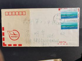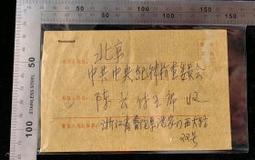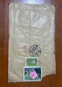 特殊加盖封:背贴t108(6-5)卫星,陕西-北京,背加盖红色北京17支落戳,带原始信扎16开纸一通2页,双戳戳清晰,1986.9.25,gyx222016