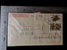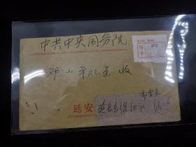 名人信札:延长县煤矿工人寄给领导的实寄封,挂号封,背贴t20开发矿业4-4筋票,背加盖红色北京中南海17支落戳,延长县-北京,双戳清,裸封,1979.9.1,gyx221028