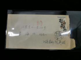 名人信札:寄给张学良侍卫处少校副官朱海北实寄封,贴T98吴昌硕(8-3)8分票,背带邮递员私章,上海-北京,3戳清裸封,1984.11.17,gyx221020