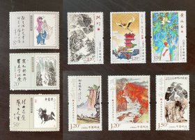 新中国邮票:1989年T141、2018-10、2024-17当代美术作品选 第 一、二、三组共9枚合售(叶浅予、李可染、吴作人、关山月、李苦禅、丰子恺, 张仃,周令钊、陈若菊,黄永玉)