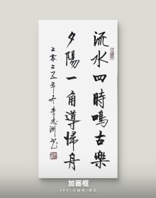 李志洲书法作品,四尺四开小品《流水四时鸣古乐,夕阳一角导归舟》画芯。出售的是画芯,证书是展示。