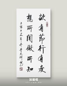 李志洲书法作品,四尺四开小品《欲有节行有度,想所闻做所知》画芯。出售的是画芯,证书是展示。