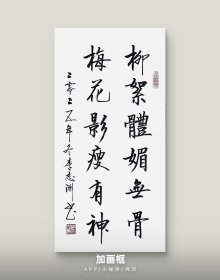李志洲书法作品,四尺四开小品《柳絮体媚无骨,梅花影瘦有神》画芯。出售的是画芯,证书是展示。