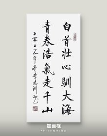 李志洲书法作品,四尺四开小品《白首壮心训大海,青春浩气走千山》画芯。出售的是画芯,证书是展示。
