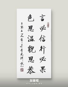 李志洲书法作品,四尺四开小品《言必信行必果,色思温貌思恭》画芯。出售的是画芯,证书是展示。
