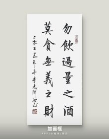 李志洲书法作品,四尺四开小品《勿饮过量之酒,莫贪无义之财》画芯。出售的是画芯,证书是展示。