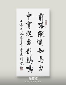 李志洲书法作品,四尺四开小品《前路纵遥知马力,中宵起舞到鸡鸣》画芯。出售的是画芯,证书是展示。