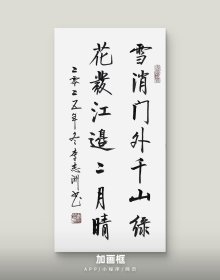 李志洲书法作品,四尺四开小品《雪消门外千山绿,花发江边二月晴》画芯。出售的是画芯,证书是展示。