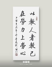 李志洲书法作品,四尺四开小品《以教人者教己,在劳力上劳心》画芯。出售的是画芯,证书是展示。