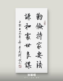 李志洲书法作品,四尺四开小品《勤俭持家要法,谦和处事良谋》画芯。出售的是画芯,证书是展示。