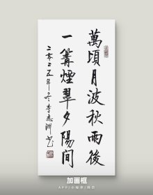 李志洲书法作品,四尺四开小品《万顷月波秋雨后,一篝烟翠夕阳间》画芯。出售的是画芯,证书是展示。