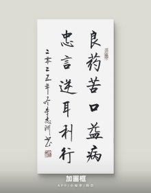 李志洲书法作品,四尺四开小品《良药苦口益病,忠言逆耳利行》画芯。出售的是画芯,证书是展示。