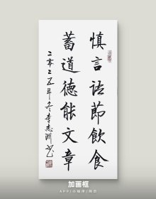 李志洲书法作品,四尺四开小品《慎言语节饮食,蓄道德能文章》画芯。出售的是画芯,证书是展示。