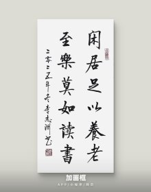 李志洲书法作品,四尺四开小品《闲居足以养老,至乐莫如读书》画芯。出售的是画芯,证书是展示。