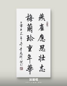 李志洲书法作品,四尺四开小品《燕雀应思壮志,梅兰珍重年华》画芯。出售的是画芯,证书是展示。