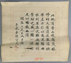 质之师友…清朝手写行楷八股文残片.传统手工托裱.页面尺寸约10.4x21.5cm.明.清.民国.自然老破旧纸质文本.结识有缘人. 不议价.【老书法文创小品】