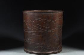 近代,紫檀山水风景笔筒。