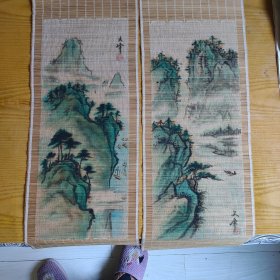 竹帘画 山水风景一对