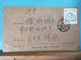 FP10-2157《七八十年代 贴T票 实寄封》 贴T 43(8-2)西游记 8分票(残) 内蒙古通辽实寄 辽阳