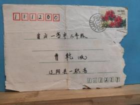 FP10-2172 1992年 贴T票 实寄封 贴T162(8-3)杜鹃花 20分票 辽阳实寄辽阳首山一高中