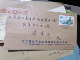 1996年国营湖南省岳阳市湖滨五交化公司寄往山西阳泉实寄封贴20分T票一枚)
