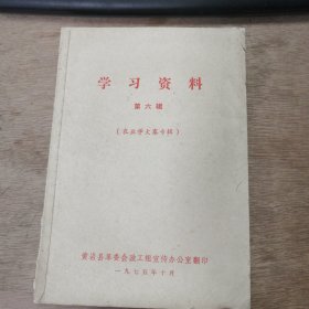 《学习资料 第六辑》(农业学大寨专辑) 全国农业学大寨会议在昔阳隆重开幕/学习大寨的根本经验/坚持大批资本主义,坚持大干社会主义/农业学大寨运动中的俩条路线斗争 ......