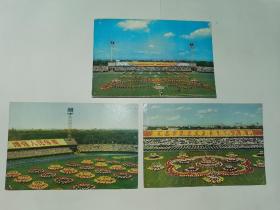 老明信片---《中华人民共和国运动会团体操:草帽绸巾操,花条操,丰硕之果》!(3张合售)
