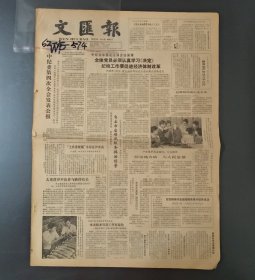 八十年代老报纸文汇报,河北王兆梅,民航北京售票中心大楼,上海第十八漂染厂,自立书店,江苏省泗阳县城厢乡,金润石化公司,上海工大、上海人艺签订科技文化交流协议,杨浦区,贾丽妮,李宁,上海发行所,邓若曾,倪天增,朱占福,李家善,虹口区虹镇街道安乐居委会,上海铸造厂,陆抑非,南汇县横沔工业公司,王关泉、黄明章、蔡根祥,唐公民,宜兴陶瓷多用电视机架,宜兴均陶工艺厂